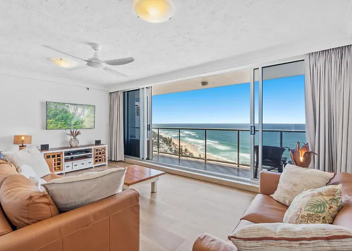 A Mermaid Beach Beach hozzávetőlegesen egy 5 perces sétára található a 2 szobás Stunning Beach & Ocean Views Gold Coast apartman területétől, ahol török gőzfürdőt, törökfürdőt és beltéri medencét kínál. A 119 m²-es apartman rendelkezik fitnesz órákkal, piknikezőhellyel és játszótérrel, továbbá Wi-Fi-t biztosít üzleti és szabadidős igényekhez egyaránt.